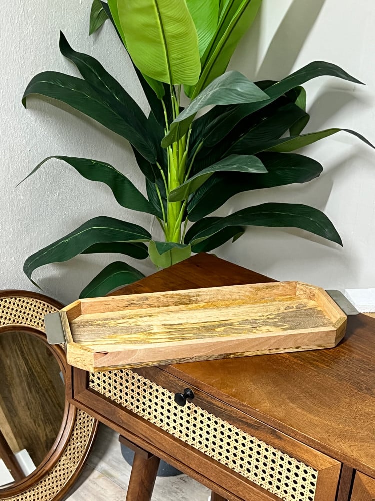 صحن خشب طبيعي مستطيل مقبض حديد كبير