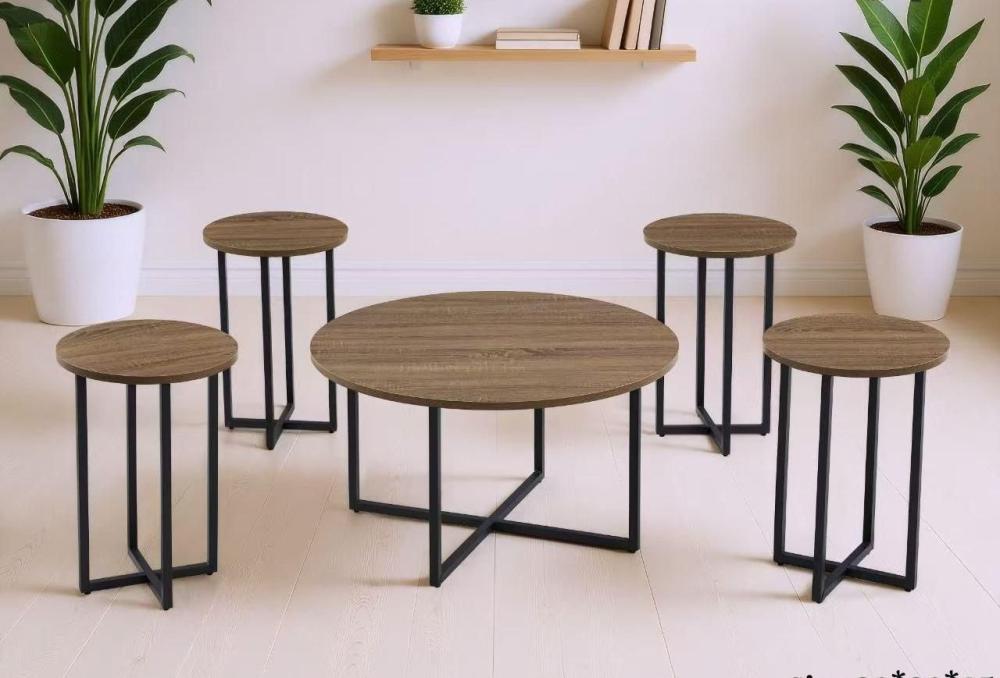 طقم طاولات ضيافة دائري بقوائم حديد وسطح خشب مناسبه للمجالس او لصالات المعيشة المقاسات الطاولة الرئيسية القطر 80سم الارتفاع 45سم الخدمه القطر 40سم الارتفاع 55سم