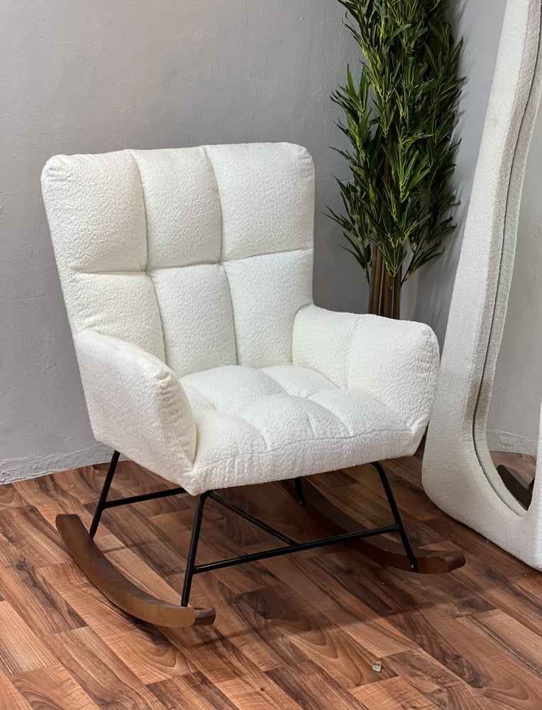 كرسي استرخاء هزاز بلون أسكري وخامة قماش بوكليه يوفر لك الراحة والاسترخاء. تصميمه الأنيق والعصري يجعله قطعة مميزة في أي مساحة داخلية. يتميز الكرسي بقماش بوكليه عالي الجودة الذي يوفر شعورًا ناعمًا ومريحًا. بالإضافة إلى ذلك، يحتوي الكرسي على وظيفة الهزاز التي تساعد في الإسترخاء وتهدئة الأعصاب. اللون الأبيض يضفي لمسة من النقاء والأناقة على الكرسي ويتناسب مع مختلف أنماط الديكور. استمتع بلحظات هادئة ومريحة مع كرسي الهزاز بخامة قماش بوكليه سكري.